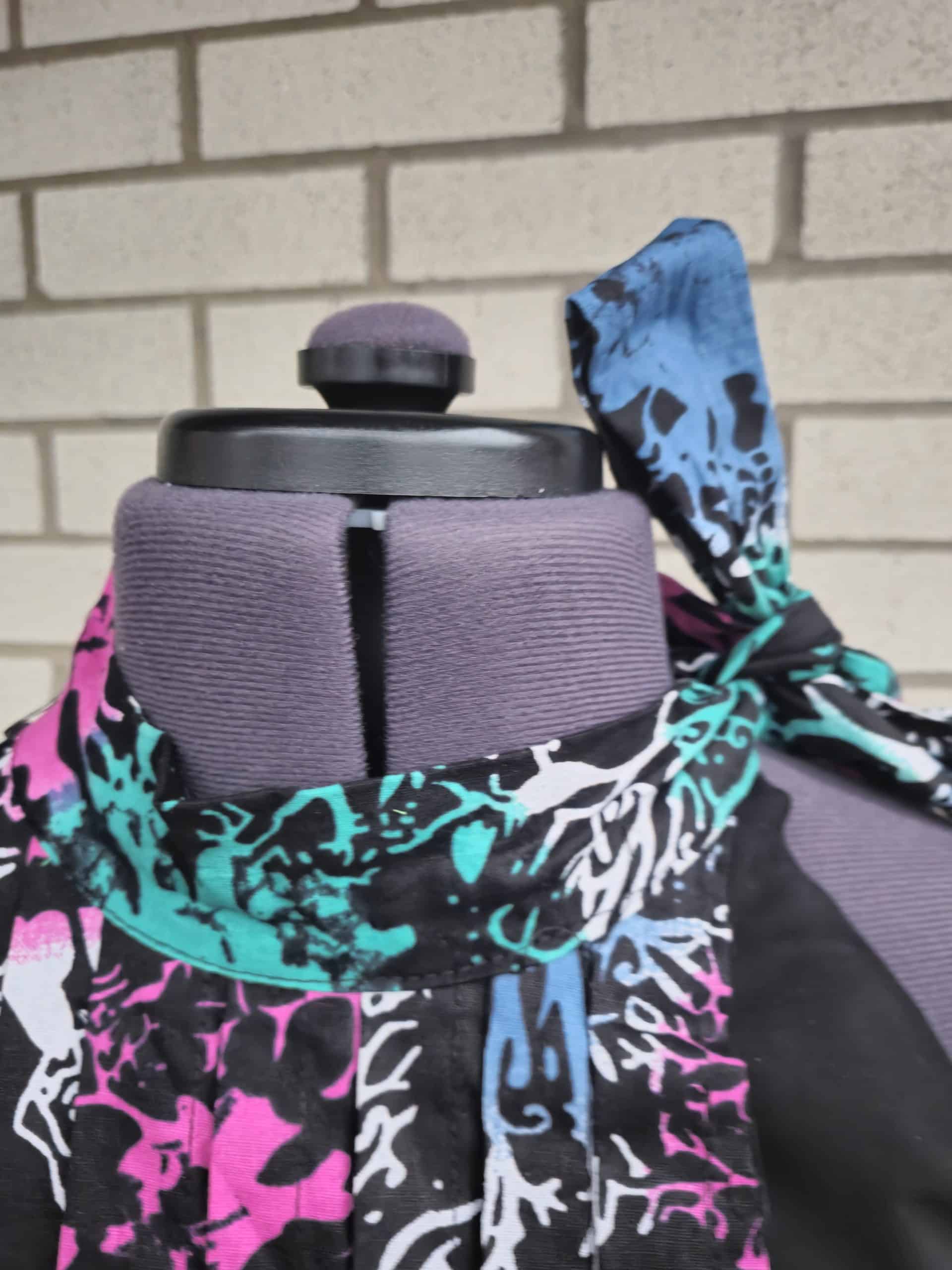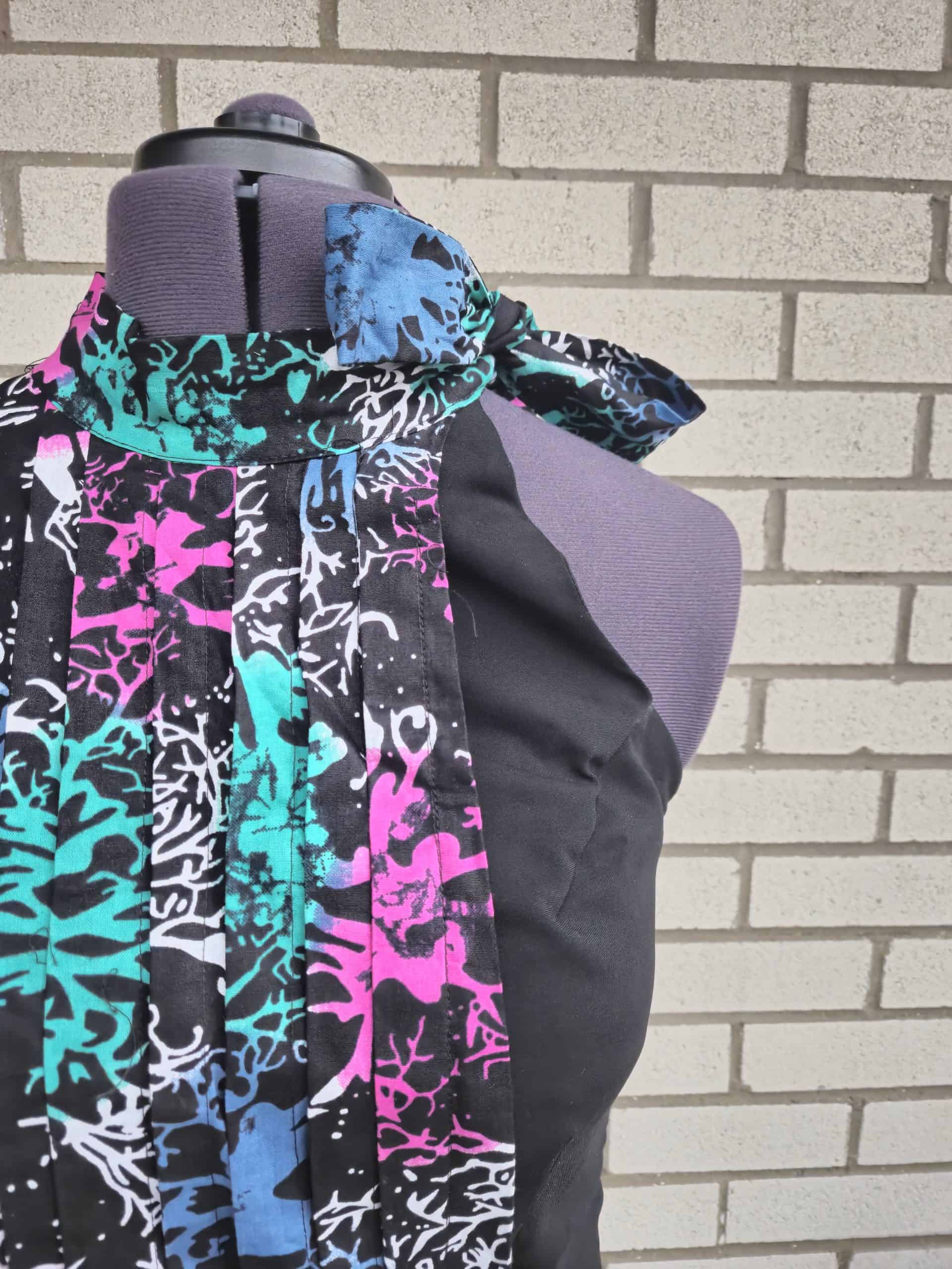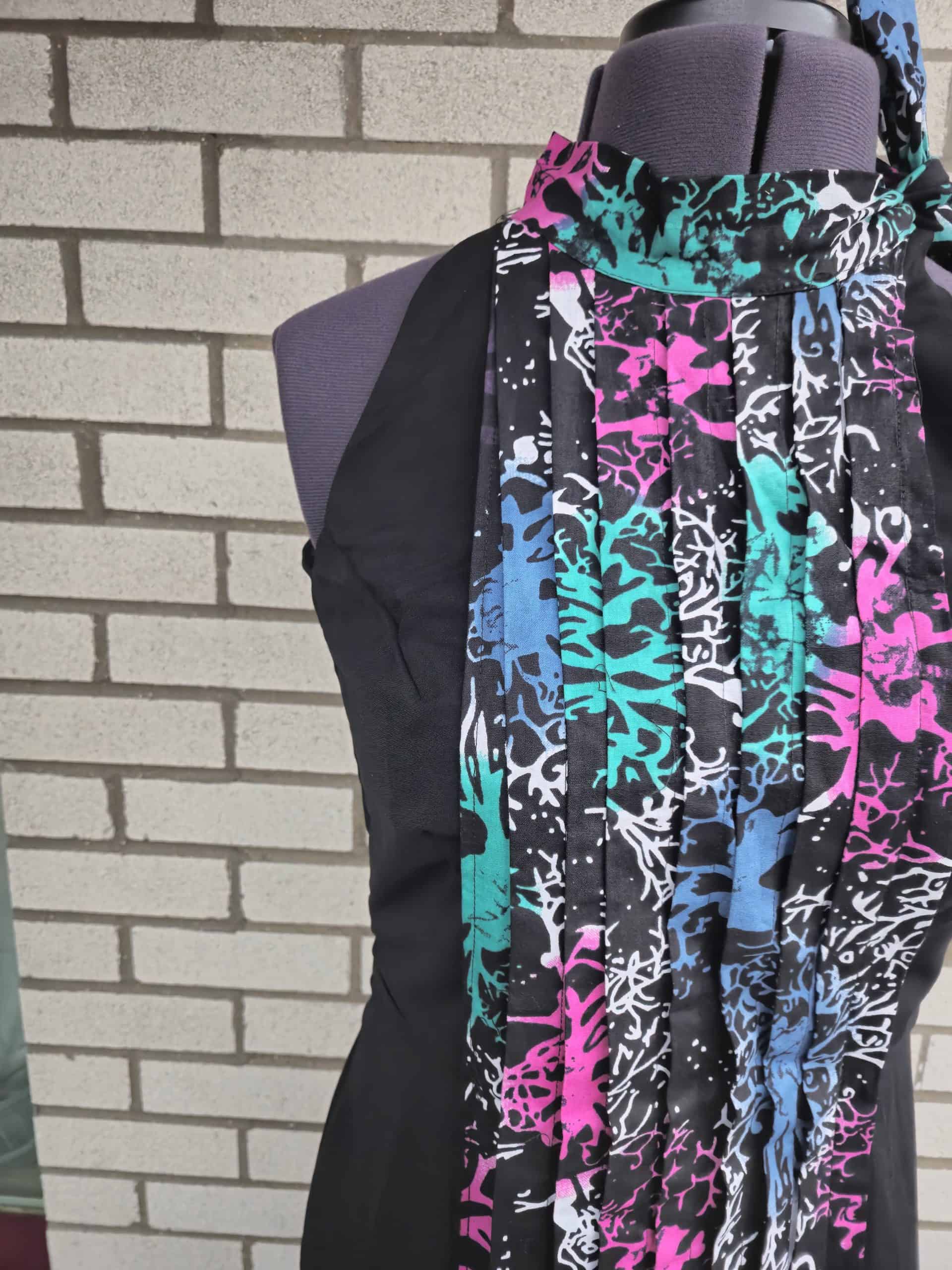 Unique Design: Features a striking halter neckline and a vertical panel of vibrant Ankarathat elongates the figure.